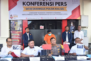 Hal tersebut disampaikan dalam Konferensi Pers yang dihadiri Dir Reskrimsus Polda Kalsel Kombes Pol M. Gafur Aditya H. Siregar, S.I.K., Kabid Humas Polda Kalsel Kombes Pol Adam Erwindi, S.I.K., M.H., Plt. Kasubdit V Tipidsiber Dit Reskrimsus Polda Kalsel AKBP Ricky Boy Siallagan, S.I.K., M.I.K., dan Panit Subdit V Tipidsiber Dit Reskrimsus Polda Kalsel AKP Kamaruddin, S.H. bertempat di Kantor Dit Reskrimsus Polda Kalsel, Banjarmasin, Senin (20/5/2024) pukul 14.30 WITA.